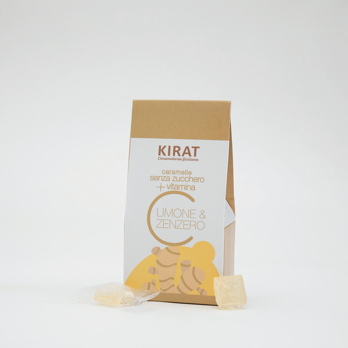 Caramelle al Limone e Zenzero senza zucchero con l’aggiunta di vitamina C.